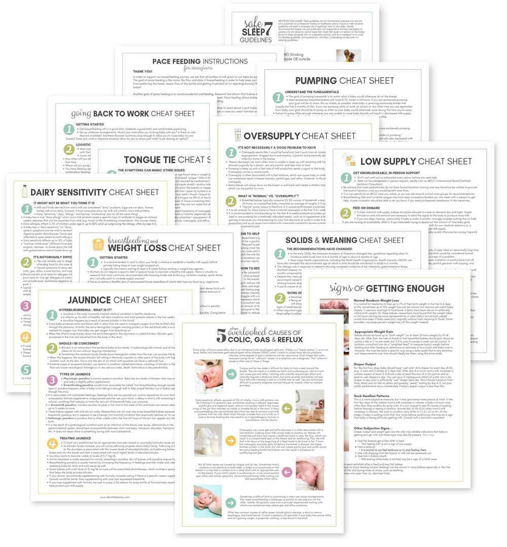 Included: The Tired Mom's Guide to Breastfeeding, The Cheat Sheet Bundle, & The Extras (2 planning pages, 1 log, 3 printables)