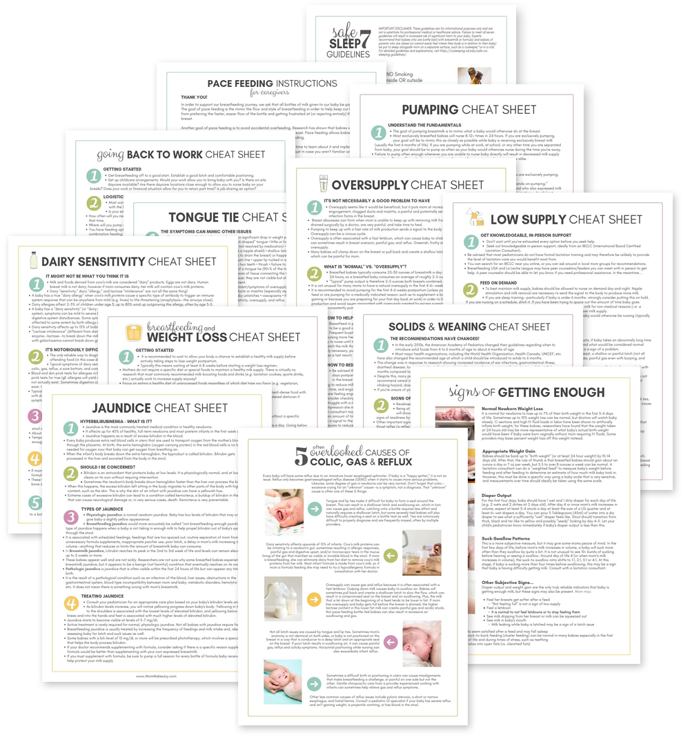 Included: The Tired Mom's Guide to Breastfeeding, The Cheat Sheet Bundle, & The Extras (2 planning pages, 1 log, 3 printables)